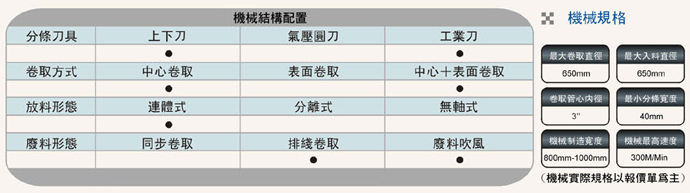 本機針對各式薄膜材料之分條。