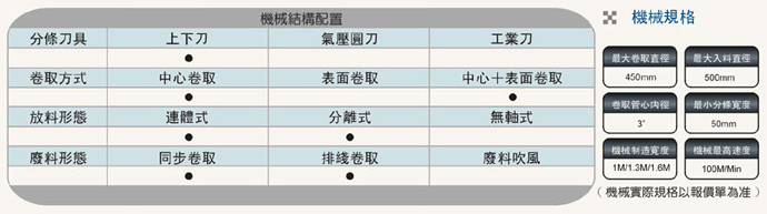 基本放料形式:有軸連體式機座,可放三種不同材料,進行貼合后分條卷取。